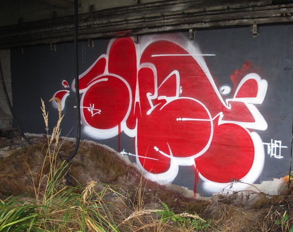In the world of contemporary street art, graffiti writers run letters of a moniker together in “tags,” sometimes done as “one-liners” with uninterrupted flow from the spray can, or more elaborate “throwups”or “throwies.” Here letterforms are not only influenced by the aerosol tools; they must also be both personal and quick. Norms are again learned from existing examples and more experienced creators. Artists will keep sketches of throwups they plan, complete, or admire in “black books.” These sketchbooks, visual records of their personal engagements with lettering craft, are a fascinating analog to the samplers of centuries before.